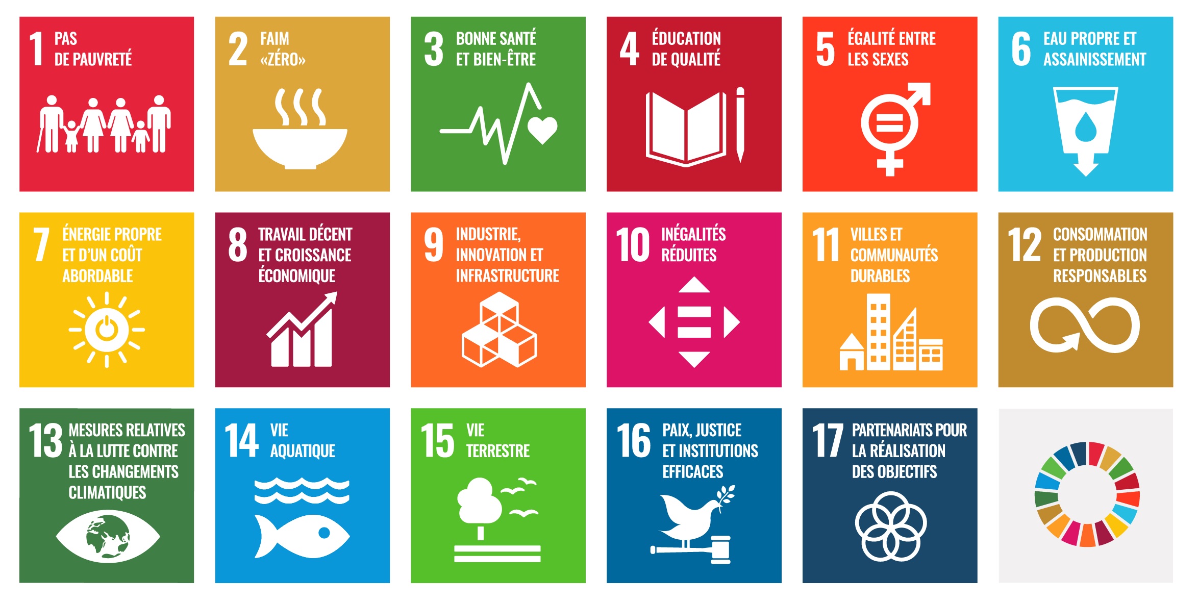 En 2015, l’Organisation des Nations Unies, aussi appelée ONU a tenté de transformer ces énormes défis mondiaux en 17 Objectifs de Développement Durables (ODD). L’ONU est la plus grande organisation internationale pour la paix, la sécurité et le développement.