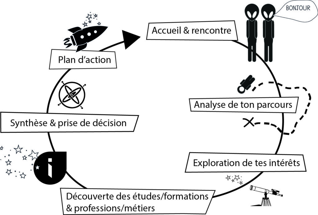 Pour clarifier tes envies et te projeter dans ta vie future, nos conseillers sont là pour t’aider à travers différentes étapes, sur plusieurs entretiens.